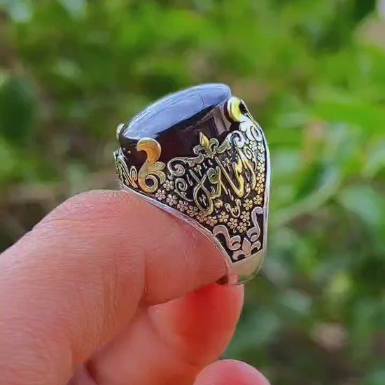 الخاتم متوج بحجر عقيق يماني طبيعي 100%، تختاره أنت من بين أجمل الأنواع المتوفرة لدينا (طحلبي – خرائطي – مصوّر – جزع وغيرها)، ليحمل بصمتك الخاصة في كل تفصيلة.